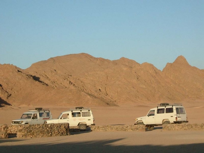 At 11:00 AM your desert guide and driver will pick you up from your hotel in Hurghada or El Gouna by Jeep 4x4 to start your adventure trip inside the desert for 35 KM. Driving  between the mountains of Hurghada to the Bedouin Village for a tour to discover their life and traditions, then you will ride a camel and drive quad bike around the Bedouin village and witness the amazing sunset view with barbeque dinner, mineral water and soft drinks included, enjoy the show and watching stars by night while driving back from Bedouin village to your hotel in Hurghada.